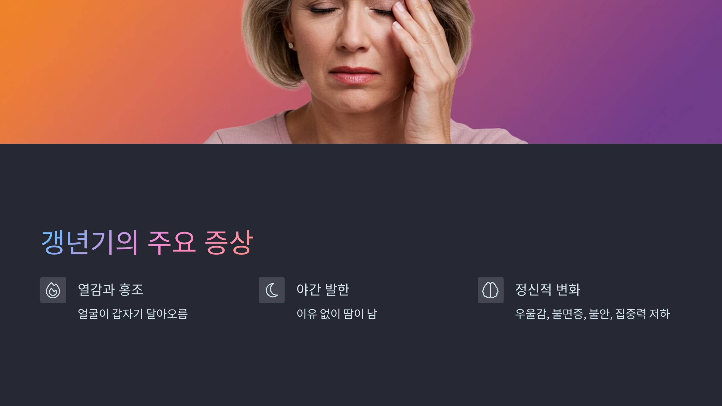 갱년기로 인한 불면, 열감, 기분 변화… 혹시 무시하고 넘기고 계신가요?