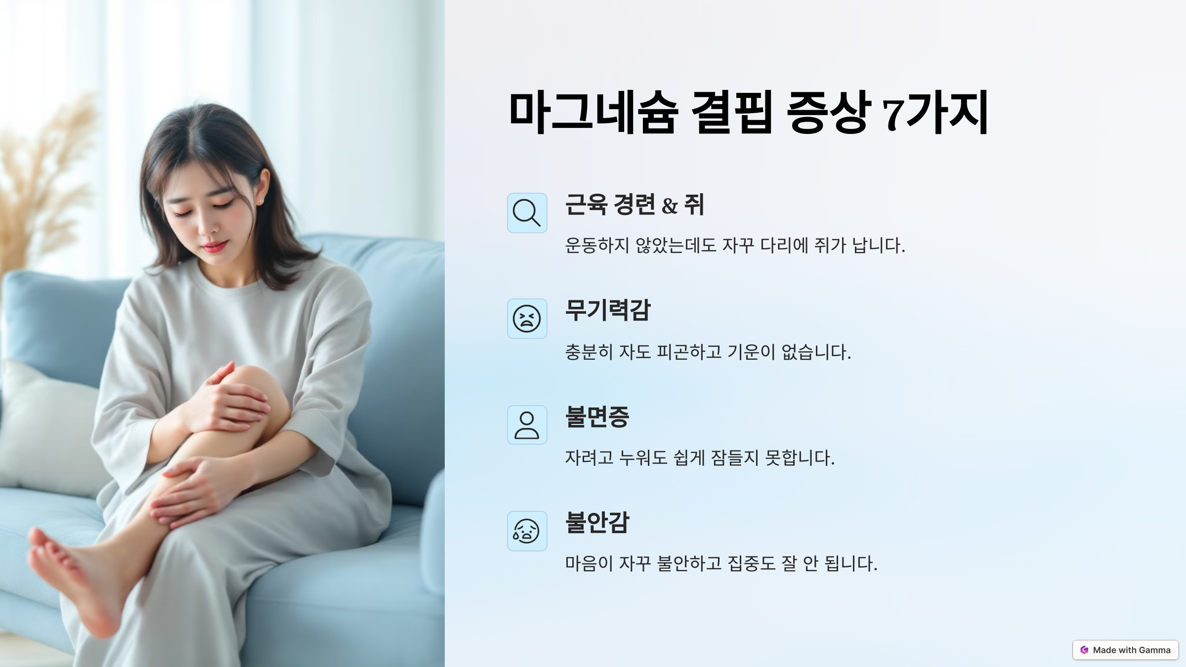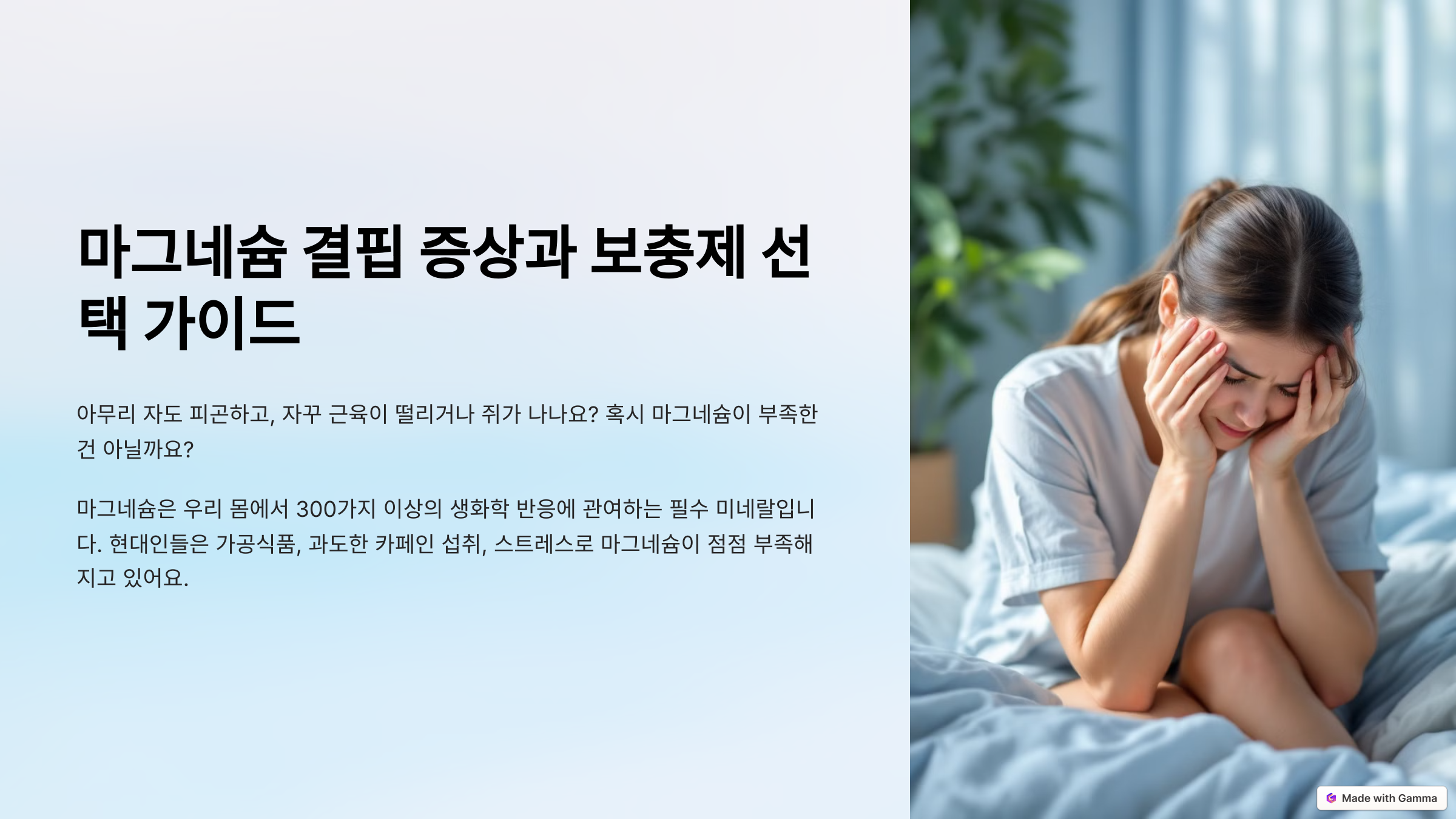 아무리 자도 피곤하고, 자꾸 근육이 떨리거나 쥐가 나요? 혹시 마그네슘이 부족한 건 아닐까요?