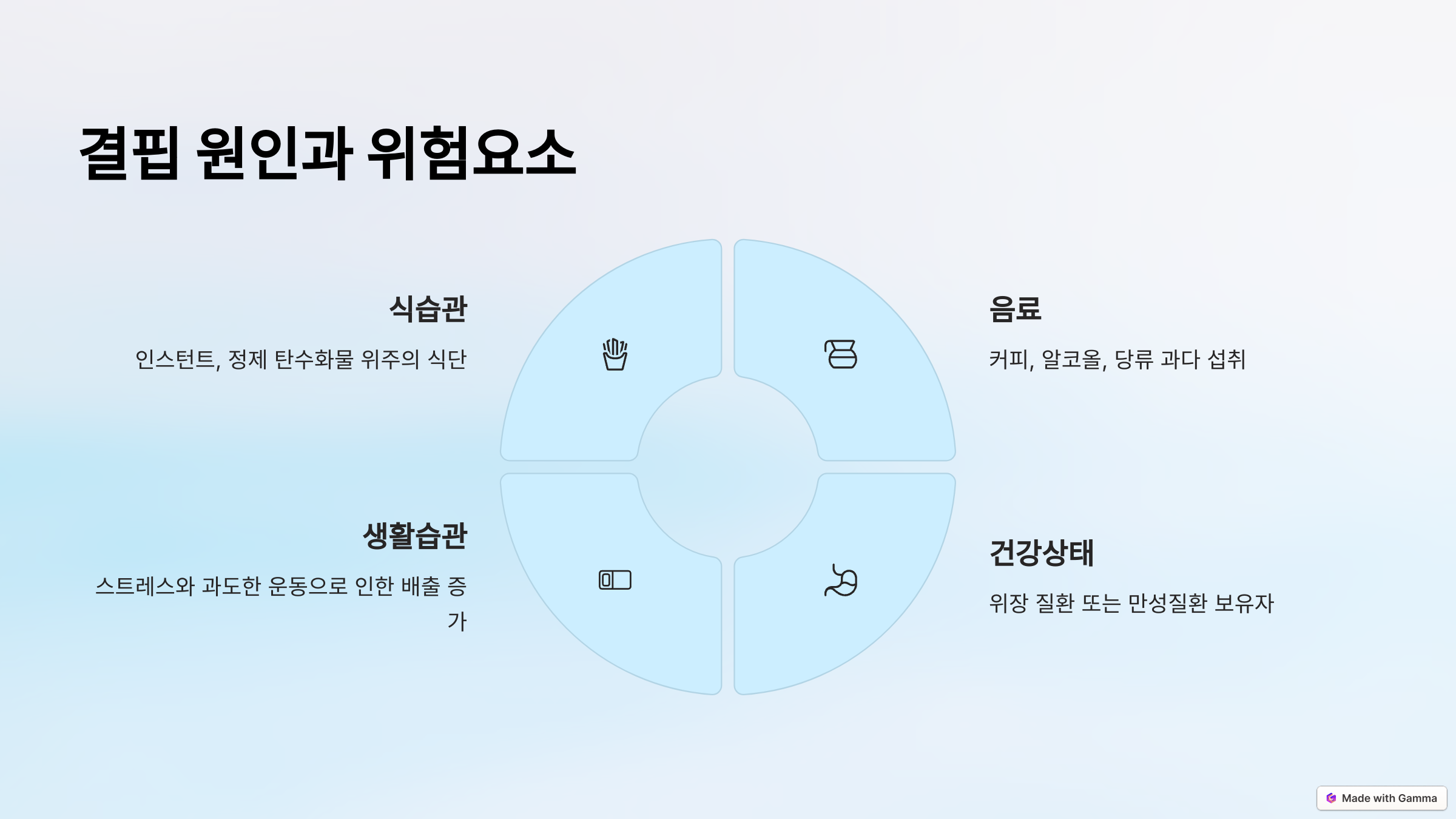 - 커피, 알코올, 당류 과다 섭취