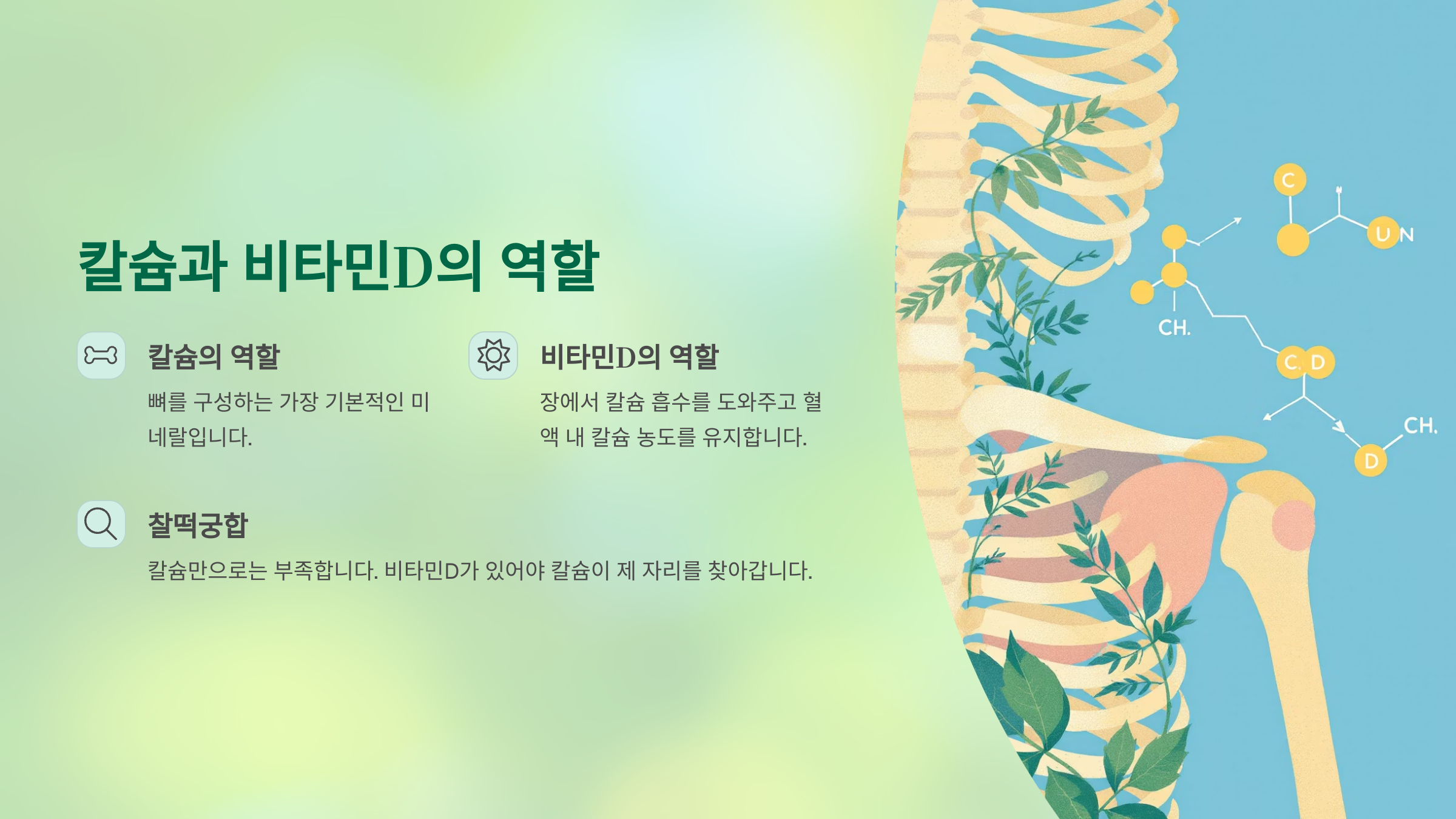 칼슘만 챙기면 된다고요? 뼈 건강을 진짜 챙기려면, 비타민D와의 ‘찰떡궁합’ 조합을 알아야 합니다!