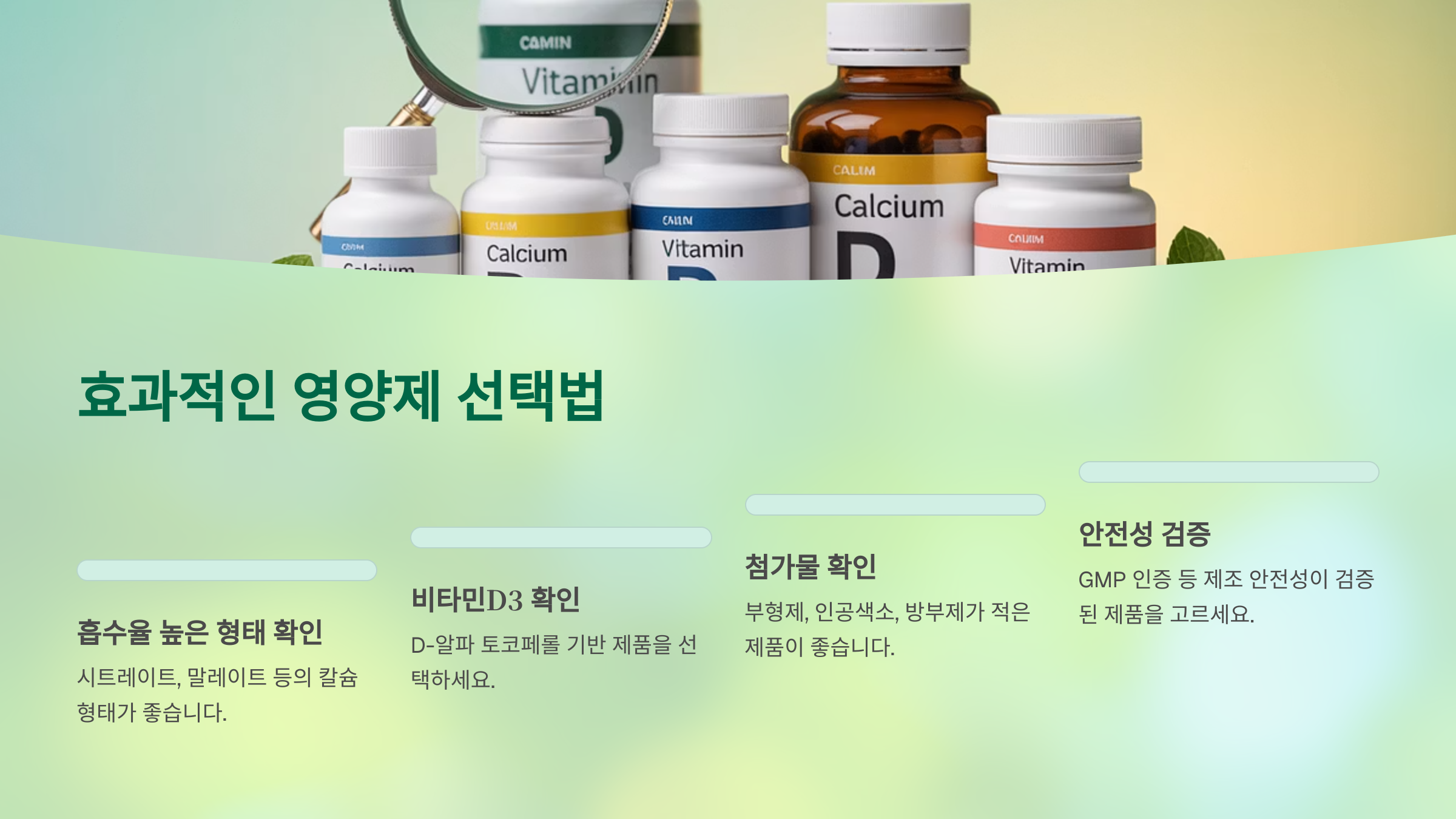 약국이나 마트에 가면 정말 다양한 종류의 칼슘·비타민D 보충제가 있죠? 뭐가 좋은지 헷갈릴 수 있는데, 몇 가지 체크리스트를 기준으로 삼으면 조금 수월해져요.