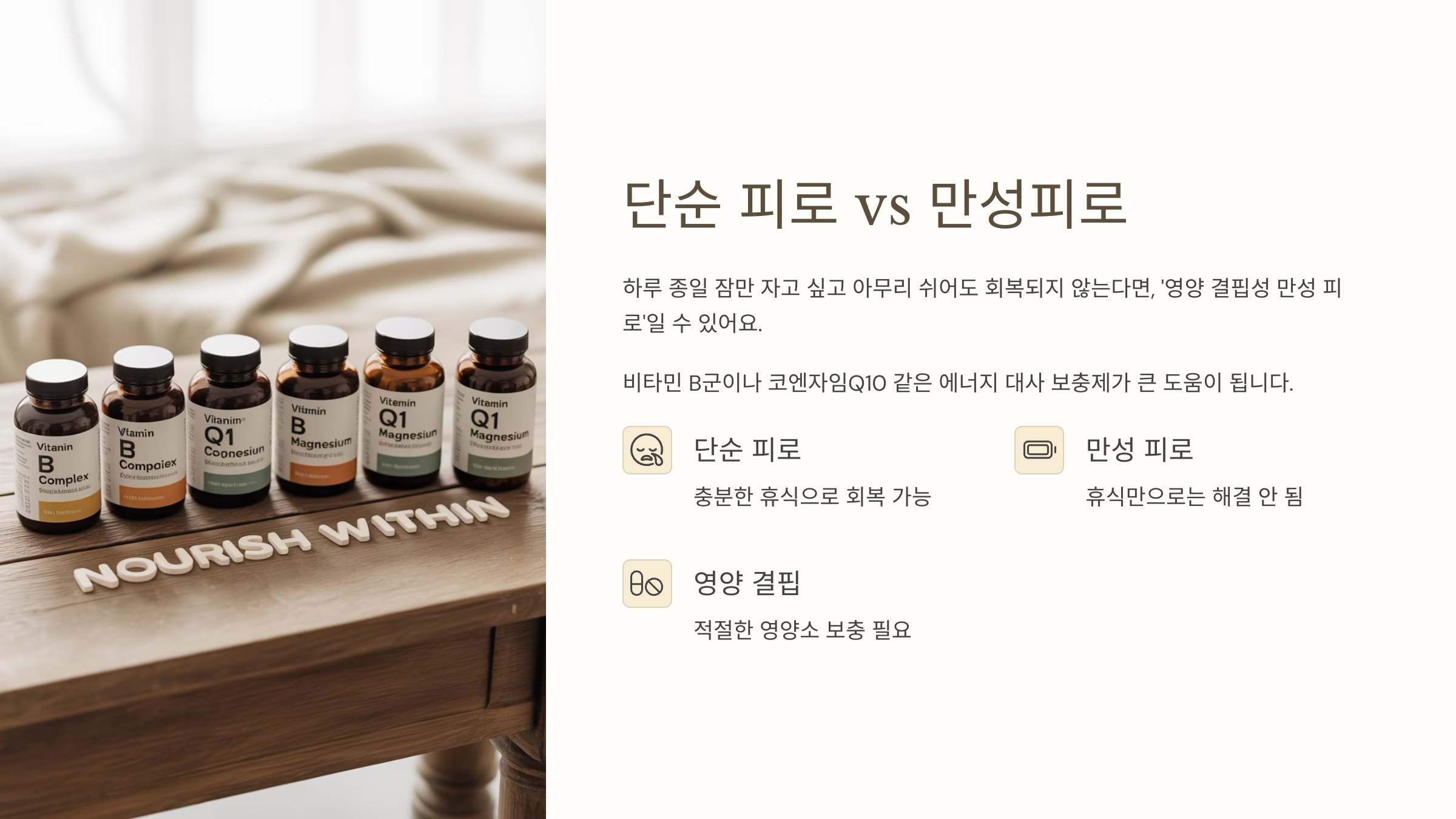 잠 자도 피곤하다면? 지금 필요한 건 수면이 아닌 ‘맞춤 영양 조합’입니다. 피로 해소에 즉효 본 실전 체험 후기를 소개합니다.