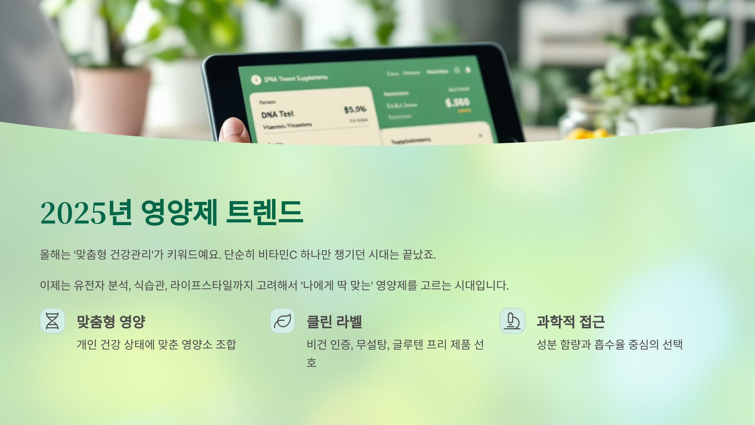 올해는 ‘맞춤형 건강관리’가 키워드예요. 단순히 비타민C 하나만 챙기던 시대는 끝났죠. 이제는 유전자 분석, 식습관, 라이프스타일까지 고려해서 ‘나에게 딱 맞는’ 영양제를 고르는 시대입니다. 특히 비건 인증, 무설탕, 글루텐 프리 같은 요소들도 필수 체크 항목이 됐고요. 2025년의 가장 뜨거운 트렌드는 ‘내 몸을 아는 영양제’라고 해도 과언이 아니에요.